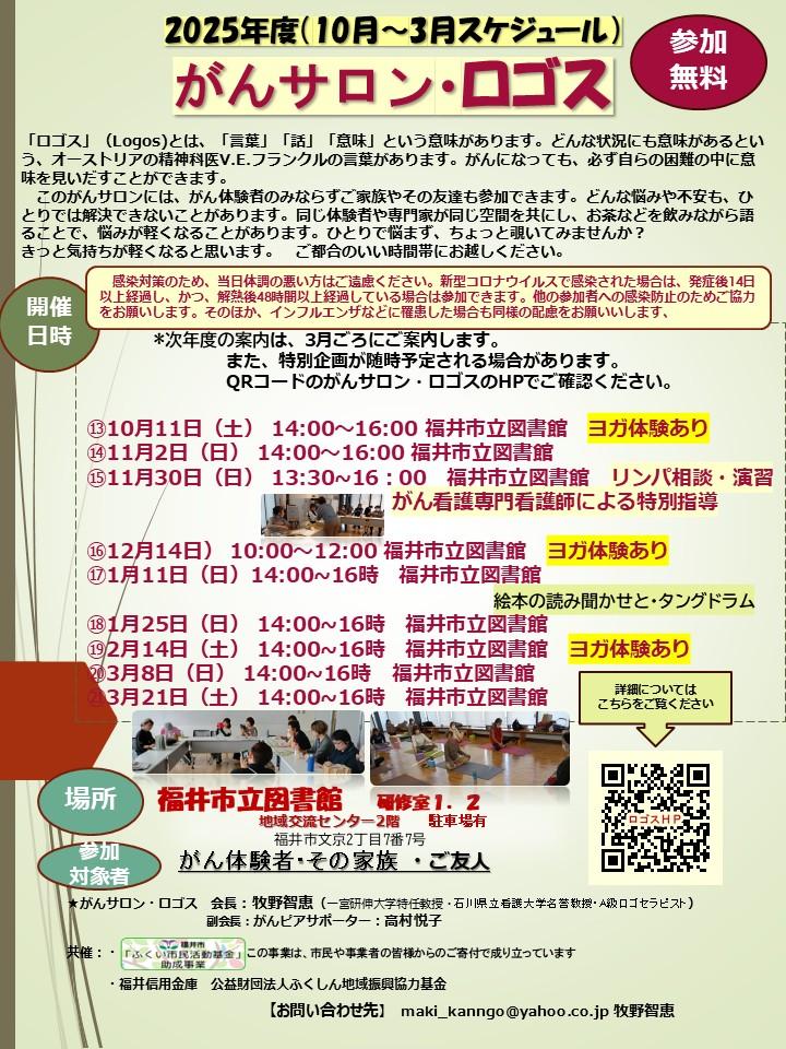 「ロゴス」(Logos)とは:「言葉」「話」「意味」という意味があります。どんな状況にも意味があると、V.E.フランクル(オーストリアの精神科医)は述べています。避けることのできない困難な出来事があっても、必ず意味を見いだすことができるということです。そのきっかけづくりのために、がん看護教育者(ロゴセラピスト)、がん・ピアサポーター、がん看護専門看護師が、お手伝いさせていただきます。